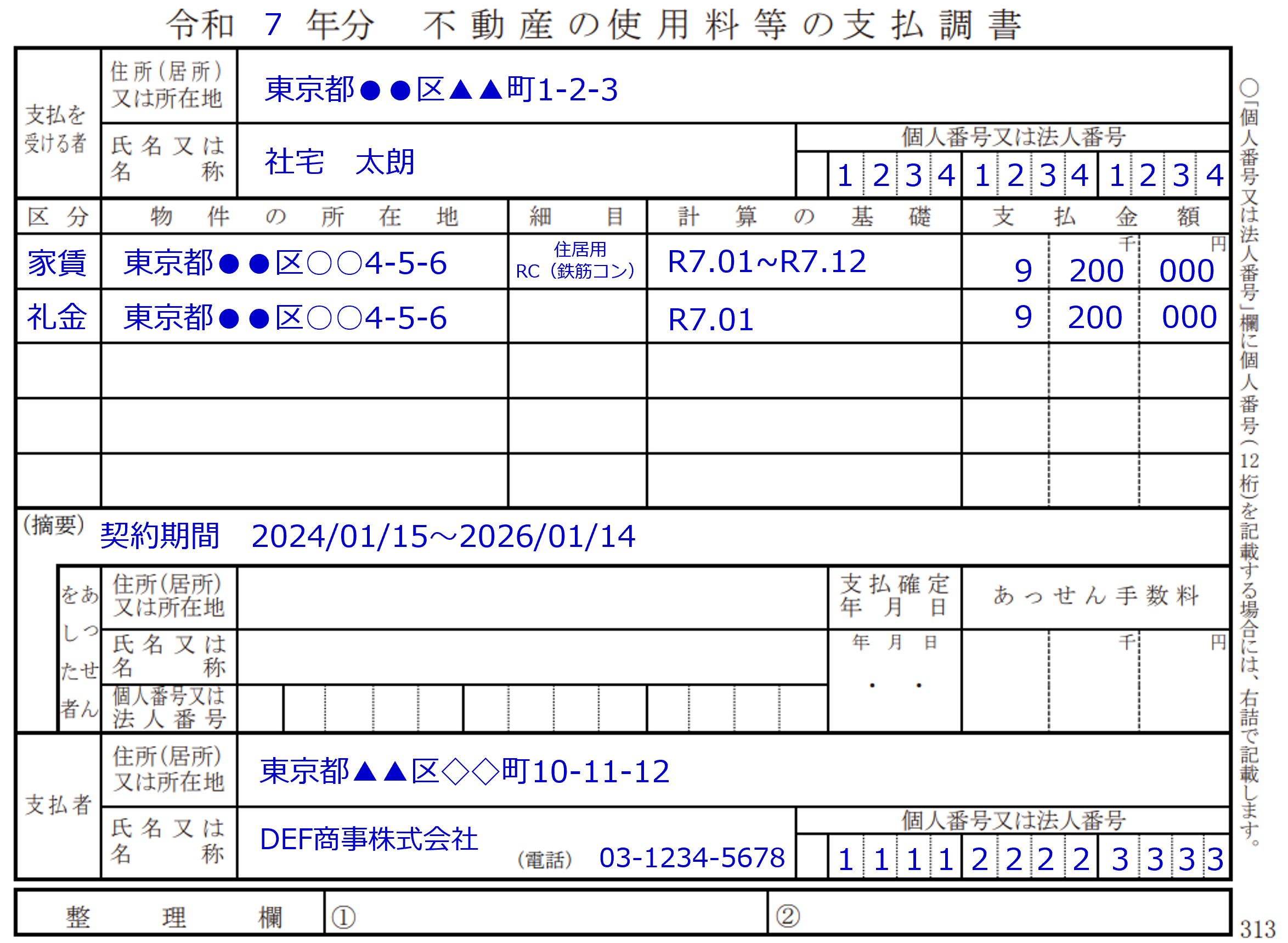 なお、重要事項説明書に「実所有者」の記載がある場合がありますが、支払調書の記載対象はあくまで「実所有者」ではなく、契約の当事者である「貸主」となります。